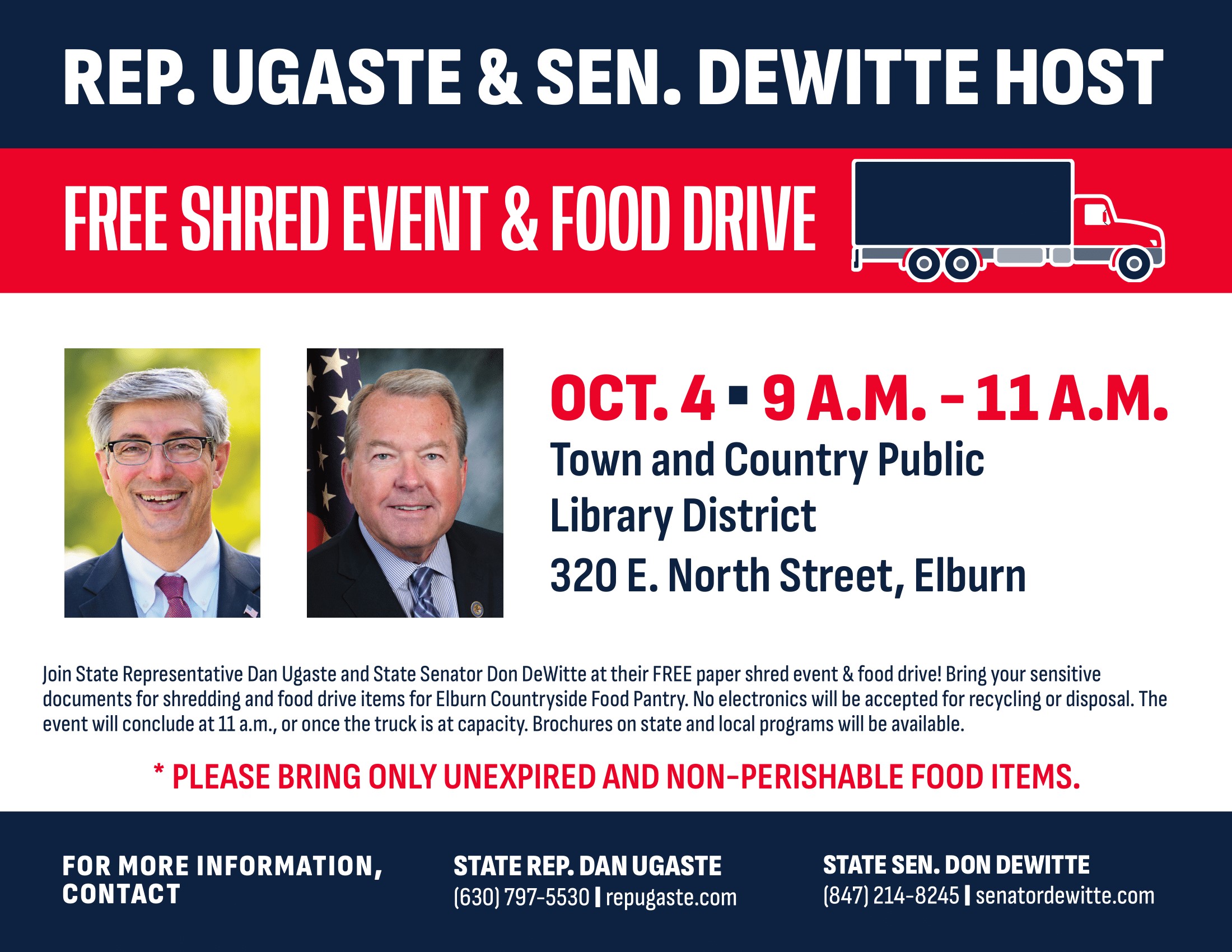 Senator DeWitte, Representative Ugaste to Host FREE Document Shredding Event & Food Drive in Elburn