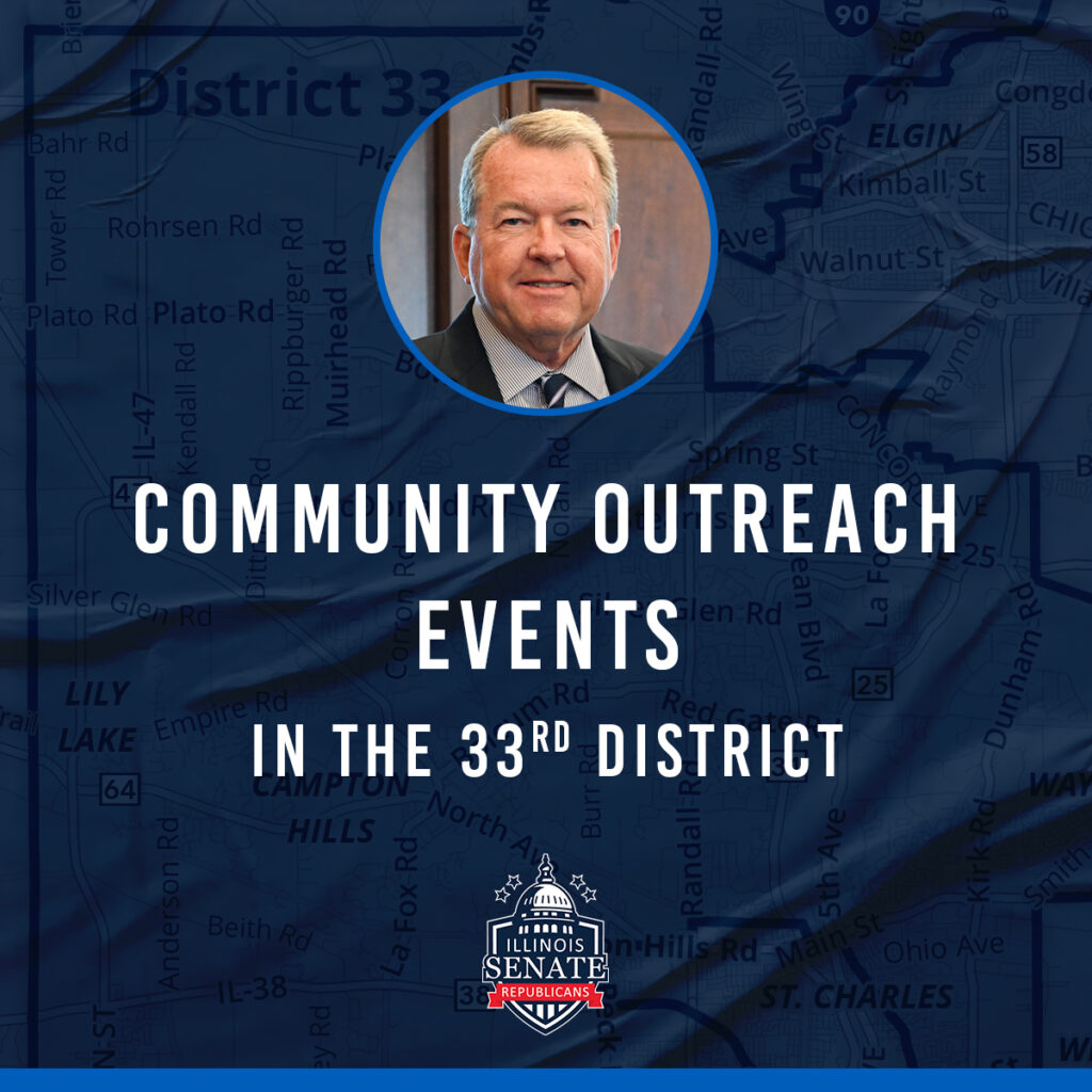 While legislators will be spending much of the next four months in Springfield, my staff and I have been working hard to put together a comprehensive list of outreach events across the 33rd District. The list below includes events that are already on the books, but additional events will be added and will be shared in future newsletters. Please mark your calendar now for the following outreach events: